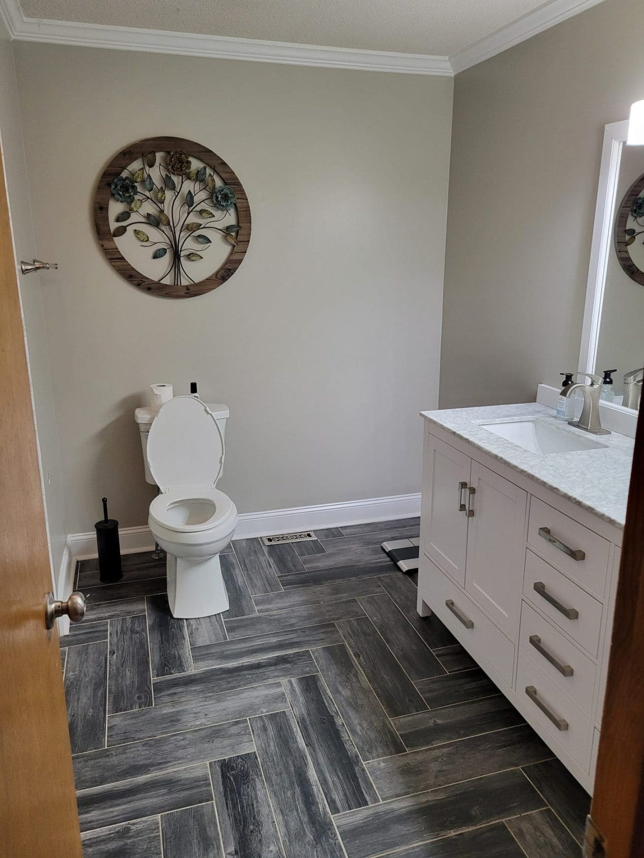 - Three spacious bedrooms and two full bathrooms, including a beautifully updated main-level bath