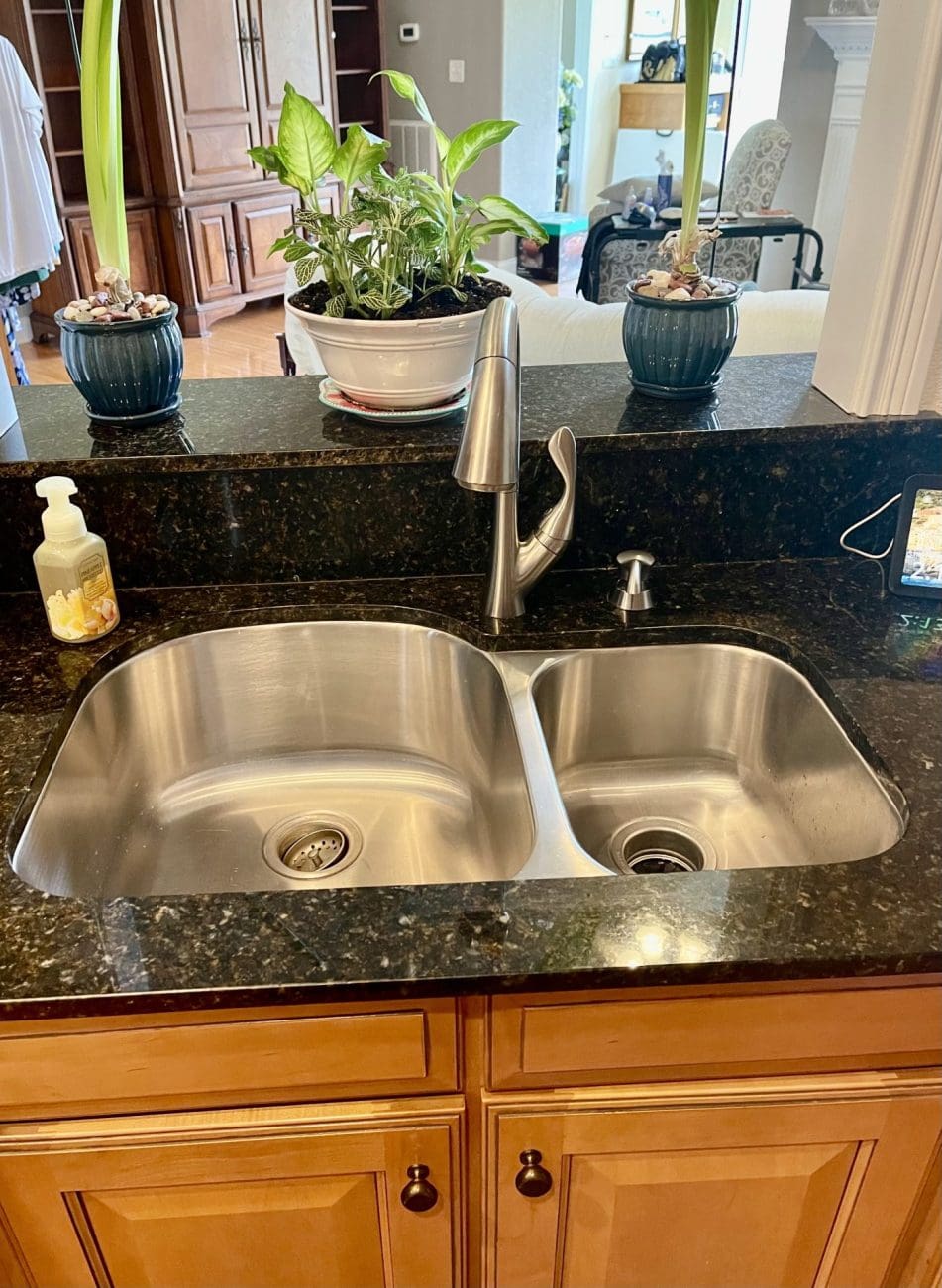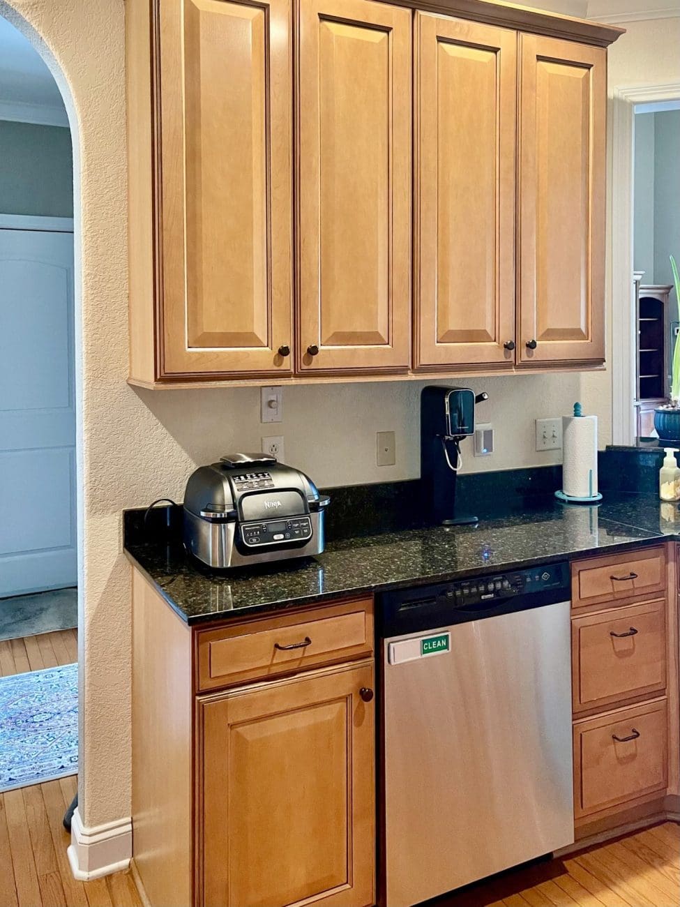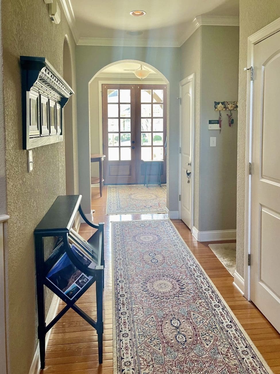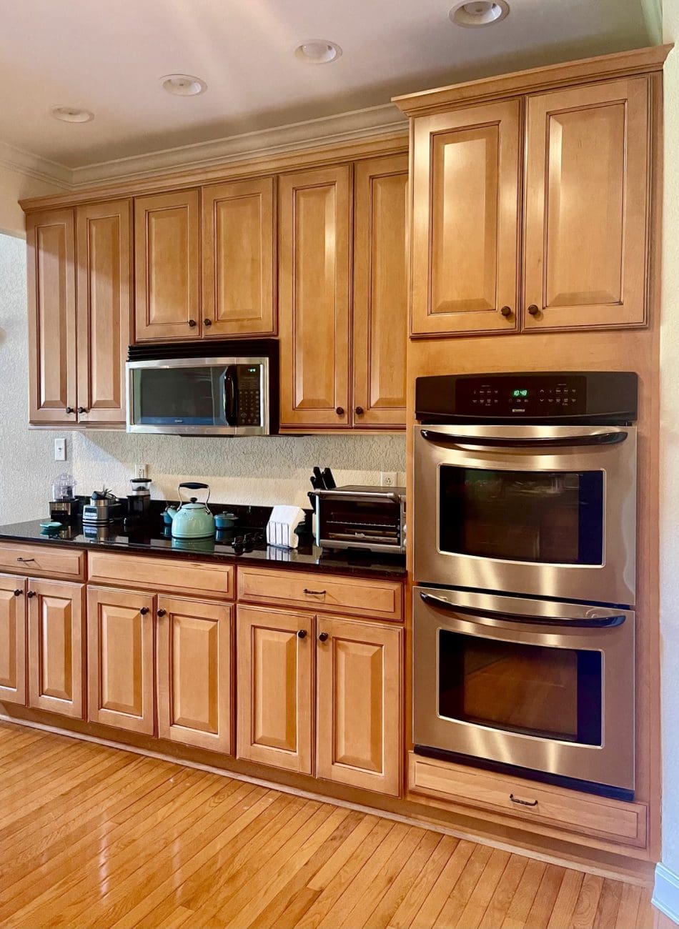 A large entrance foyer welcomes you into the home, where an arched doorway leads into the spacious living room anchored by the double-sided gas fireplace shared with the adjoining dining room. Double arched doorways connect the living and dining spaces, creating an effortless flow perfect for entertaining. The dining room features a wall of windows overlooking a large neighborhood common area, flooding the space with natural light. The kitchen is exceptionally appointed with: