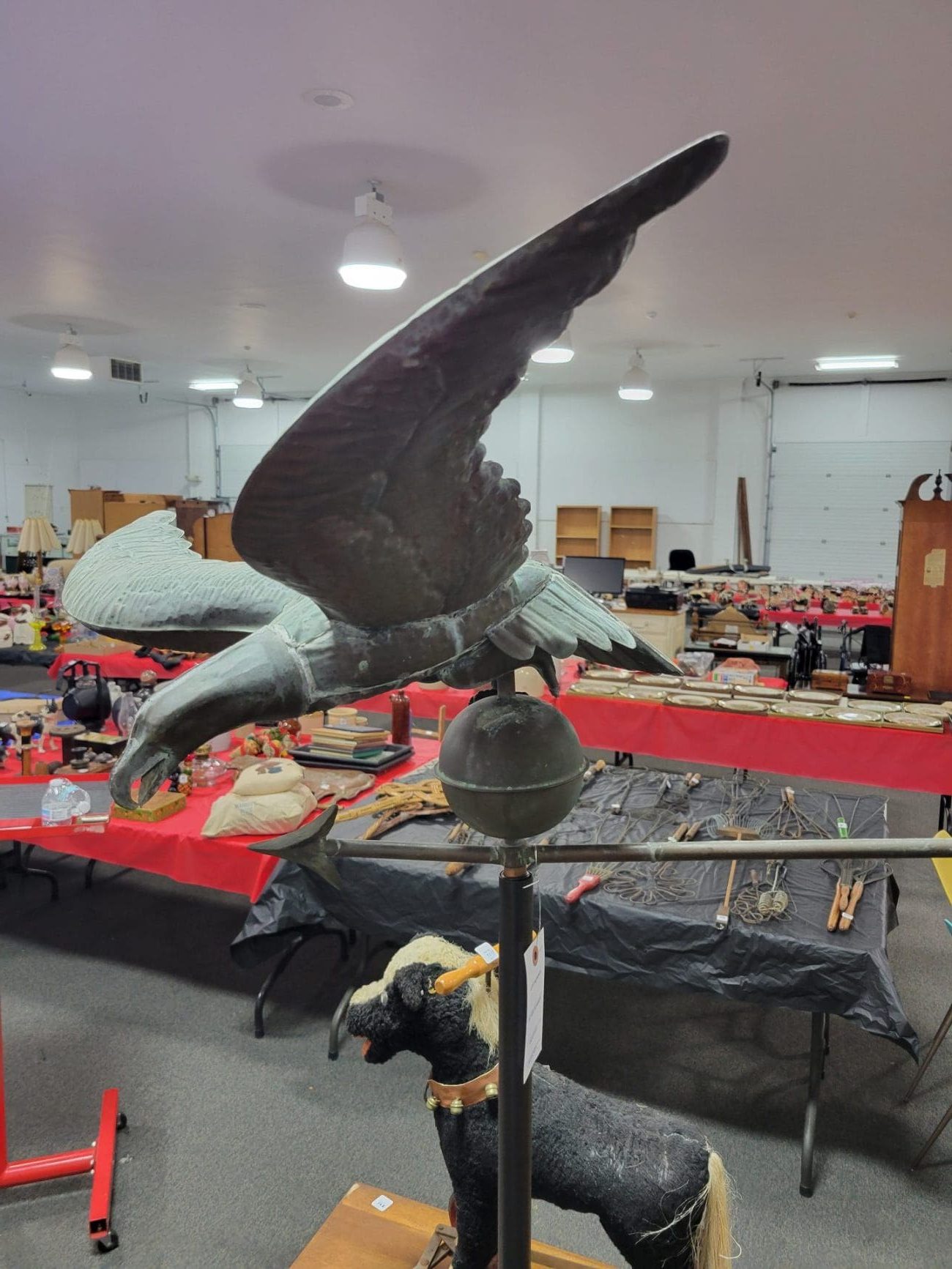 One of the Largest Collections of Rug Beaters we have seen; Cast Iron: Figurines, Door Stops, Boot Scrapes and Toys; Dolls: Ventriloquist, Character, Gerber Brand, Cloth and More; Paper Fan Menus; Prints, Pictures and Mirrors; Herman Miller Mid-Century Furniture; Howard Miller Grandfather Clock; China; Glassware; Paperweights and Lots, Lots More!!! Must See To Appreciate!!!